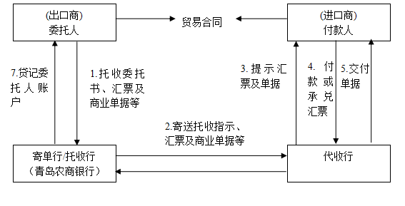 定义:托收是出口方委托本地银行根据其要求通过进口地银行向进口方提示单据,收取货款的结算方式。按照交单形式分为付款交单(D/P, Documents against Payment)和承兑交单(D/A, Documents against Acceptance)两种形式;按是否附带商业单据可分为跟单托收(Outward Collection)和光票托收(Clean Collection)。 出口跟单托收是指出口商出运货物后,将出口项下的商业票据或金融票据交给青岛农商银行,委托青岛农商银行通过国外代收行向付款人(债务人)提示并要求其付款的一种结算方式。 光票托收指不附带任何商业单据的金融票据的托收。适用于贸易、非贸易项下的小额支付;在国内不能兑换的外币现钞(含残币);外汇支票、本票,国外债券、存单等有价凭证的托收业务;不能或不便提供商业单据的交易,如寄送样品、软件等高科技产品交易、时令性商品交易,以及服务、技术转让等无形贸易。 产品特点: 与信用证方式相比,操作简单,方便易行 银行费用较低,有利于出口商节约费用、控制成本 托收项下,进口商只有承兑或付款后才能提取货物,与赊销方式相比,出口商承担的风险较小 收费标准: 跟单托收:托收金额的1‰,最低100元,最高2000元