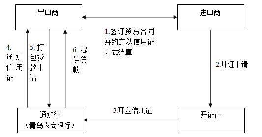 定义:指青岛农商银行以出口商(借款人)收到进口商所在地银行开来的信用证项下的预期收汇款项作为还款来源,用于解决出口商装船前,因支付收购款、组织生产、货物运输等资金需要而发放给出口商的短期贸易融资。 产品特点:可减轻客户的资金周转压力,在办理出口备货、备料、加工或采购等过程中获得短期周转资金。在客户自身资金紧缺而又无法争取到预付货款时,帮助您顺利开展业务、把握贸易机会。 功能: 专款专用,仅用于为执行信用证而进行的购货,贷款金额最高不超过信用证金额的80%,期限原则上不超过180天 信用证(包括修改)正本留存于青岛农商银行,以确保客户向青岛农商银行交单或议付 正常情况下以信用证项下收汇作为第一还款来源,出口收汇后应立即归还打包贷款 出货后,可申请用出口押汇款项偿还打包贷款 适用对象: 使用信用证结算,并在货物出口装船前有融资需求的企业 流动资金紧缺,国外进口商虽然不接受预付货款的条件但同意开立信用证 客户向青岛农商银行申请并获得相应授信额度 办理手续: 取得国际贸易融资授信额度 提交打包贷款申请书、信用证正本、采购合同及相关贸易合同 签订打包贷款合同 银行要求的其他手续